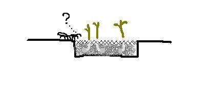 Что, если на арене, допустим, с гипсовым полом, сделать углубление, насыпать в него земли и накидать семян каких-нибудь растений-травок, а сверху решеточку, но не с очень мелкими дырочками. Т.е. не как для вентиляции, к примеру, а чуточку пошире, но мелкую для мурах. Я часто видел, как растения умудряются пробиваться где попало. А что, если выйдет, что росток сможет пробиться через сеточку и подняться? Пусть дефектное, но оно сможет жить и можно будет посадить тлю для мурах.