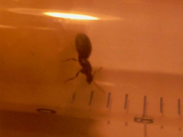 Сегодня гулял с подругой возле дома в Пискаревском лесопарке. Это была первая встреча и, разумеется, разговор зашёл о интересах и увлечениях. Девушка очень удивилась, что увлекаюсь насекомыми и, в том числе, муравьями. Начал рассказывать всё, что знаю о жнецах (Messor Structor), т.к. именно их я хочу себе завести. Как вдруг взгляд упал под ноги и я увидел спешащую куда-то маточку. Судя по всему, это lasius niger. Я судорожно начал обшаривать карманы и свою сумку в поисках хоть чего-нибудь, во что можно ее поймать. Добрался до сумки девушки и нашел коробок спичек. Девушка к тому времени и так в шоке небольшом пребывала, так что сопротивления я не встретил.