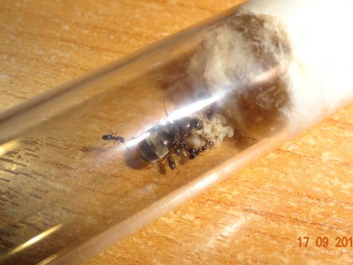 24.08.2011 - сегодня при осмотре пробирок в стеклянной пробирке обнаружил 4 мелких мураша, ураа и у нас пополнение,