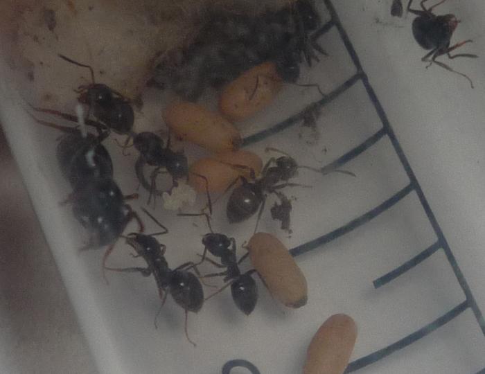 сейчас я озадачен умбратусом, огромное количество яиц и она продолжает нестись! Всех не сосчитать, но на глаз примерно 6 квадратных мм. Личинок вроде пока нет. Задумываюсь сразу о создании большого формика.