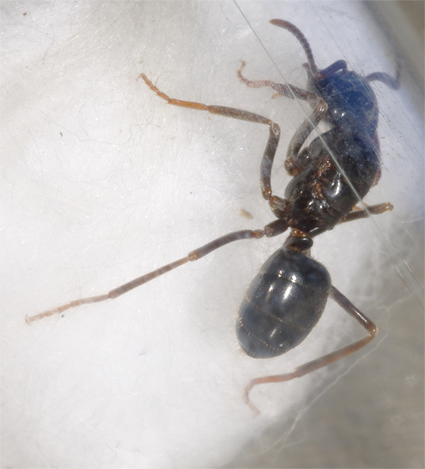 Вот как выглядит фулигиносус. Сегодня поймал. Обратите внимание на брюшко. У умбратуса оно длиннее, у фулигиносус короткое и округлое. Ну и цветом они отличаются. Кроме того умбратусихи часто таскают с собой в жвалах трупики рабочих нигера. Пожалуй никто больше так не делает из самок муравьев.