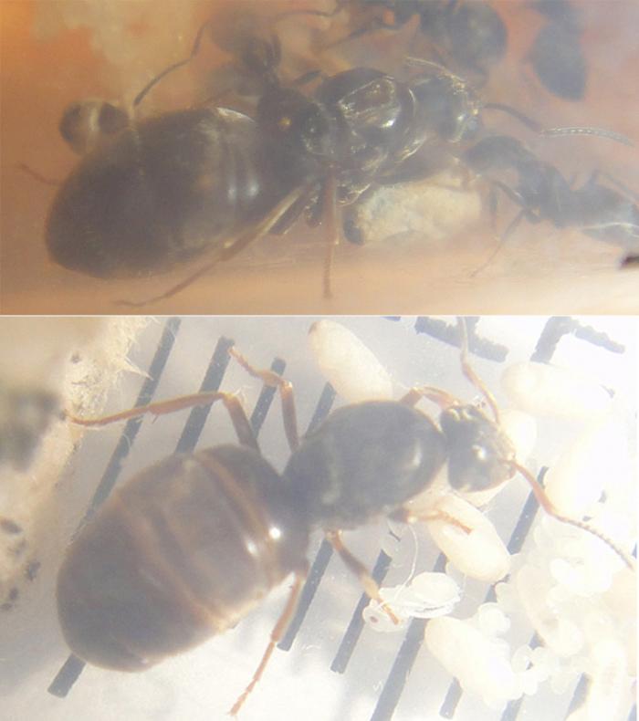Да яйца ее. Нигеры летели за две недели до того как я ее нашел. И их у меня две еще несколько таких видел так что вряд ли нигер. При подселение нигеров она вела себя скорее как умбратус не паниковала и все время приставала к рабочему без агрессии. К слову если попробовать подселить рабочего к нигеру она сразу начинает паниковать.