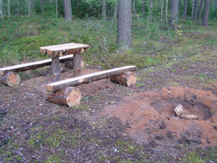 В отдельных местах позаботились и людях. установили скамейки и столики, где усталые грибники или охотники могут отдохнуть, Рядом даже выкопано углубление для костра.