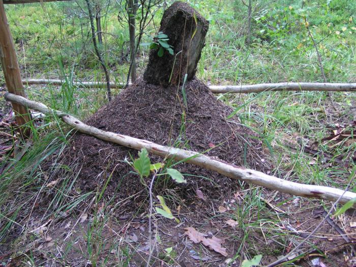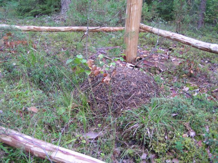 Ярославская область, г.Рыбинск, Тихменевское лесничество. В этом году, прогуливаясь по лесу, был приятно удивлен заботой лесничества о муравьях. Все муравейники рода Formica вдоль лесной дороги оборудованы ограждениями, причем, как относительно большие, так и вновь зарождающиеся на базе лежащего пня.