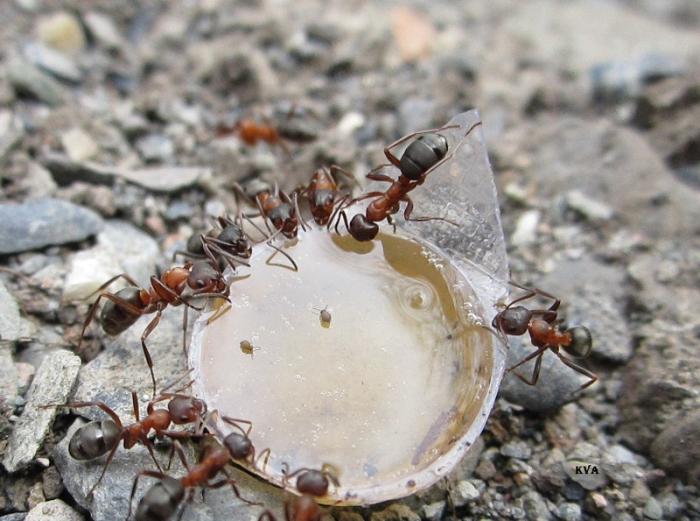 Но самые многочисленные муравьи здесь, после мессоров и тетрамориумов, раптиформики – кровавые рабовладельцы. Их муравейники повсюду. Везде можно натолкнуться на этих крупных ярких муравьёв, идущих в завоевательский поход. Нет, не за рабами (почти все сервиформики уже порабощены, или заражены, кому как больше нравится), а за едой. Они уничтожают муравейники лазиусов, забирая коконы, рабочих, самок и самцов. Хотя, всё же здесь есть одинокие муравейники-крепости сервиформик, которые не сдаются завоевателям.