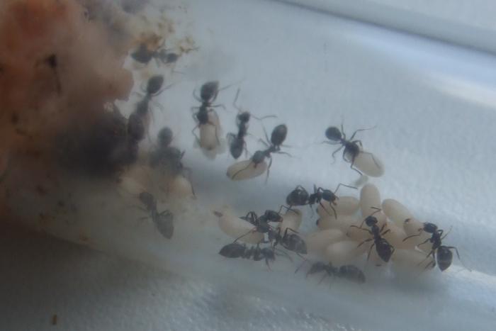 Состав колонии: 20 рабочих, 20 коконов, 40 личинок, 20 яиц.