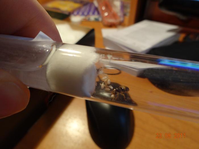 Я не могу положить в пробирку вату. Они выбегут все