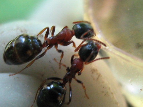 А это - другие сервиформики. Их я ещё не показывал, потому что кормлю редко. Эта семья полностью самостоятельной стала гораздо раньше, чем яркие сервиформики. Но в этот раз сироп достался и им: