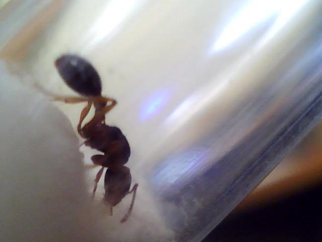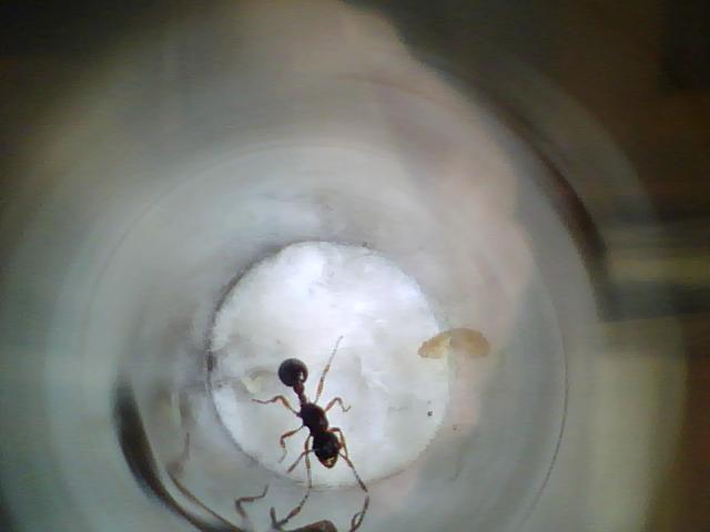 Недавно поймала матку неизвестного мне вида муравья.Очень похожа на мессор структор но у нее лапы желтоватые ,спинка коричневая.Долгое время яиц не было,когда я ей дала куриное мясо через 1-2 дня отложила яйцо.Щас яиц 4 штуки.Качество фоток плохое!!!!