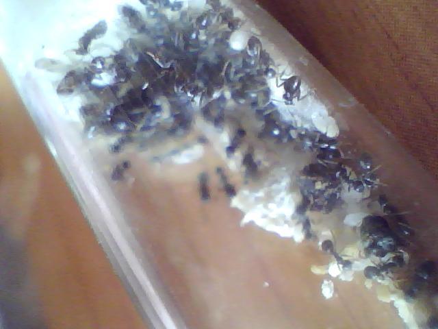 Ну, наверное, не стоит выкладывать так много однотипных фотографий. Здесь важен принцип "лучше меньше, да лучше." Вот если у Вас получится действительно хорошая фотография - тогда не грех её и людям показать. А что это в пробирки за большие белые "хлопья"? Пакеты яиц или это еда какая-то? И совет: не стоит такое большое пространство выделять в пробирке для воды. Муравьям мало место остается. Да и обычно муравьи успевают загадить ватку раньше, чем вода закончится. Я обычно наполняю водой 1/3 пробирки.