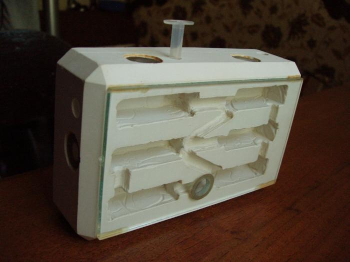 Также был использован пластелин , обернутый в продуктовую оберточную пленку . Одно вентиляционное отверстие сбоку , 2 сверху и еще одно прям в стекле в нижней части формикария. Сверху решил попробовать добавить поилку в виде шприца, но не знаю будет ли она работать... если нет - уберу.
