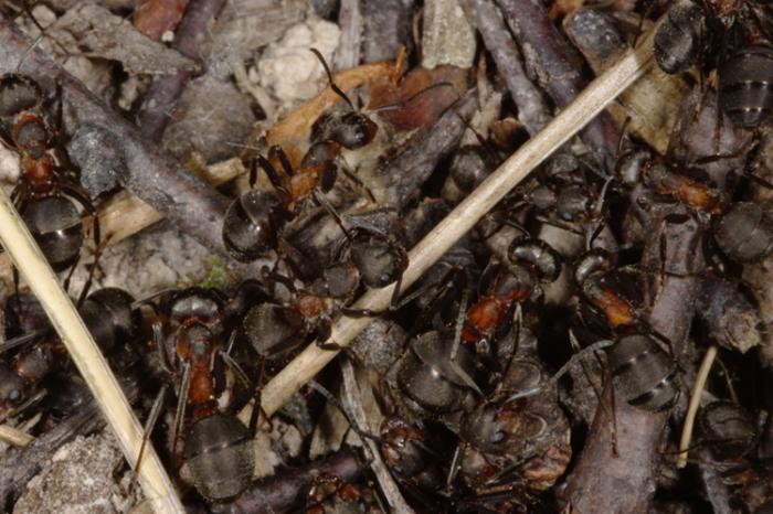 Я Считаю что на фотографии - Formica truncorum (красноголовый муравей) ... Признаки - голова и грудь ярко Красные (на голове нет темных пятен) бурое или чёрное брюшко.