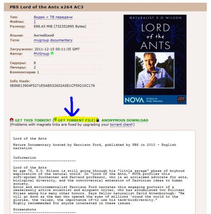 Я отметил стрелочкой, где лежит нормальный торрент файл лежит.