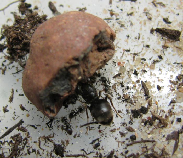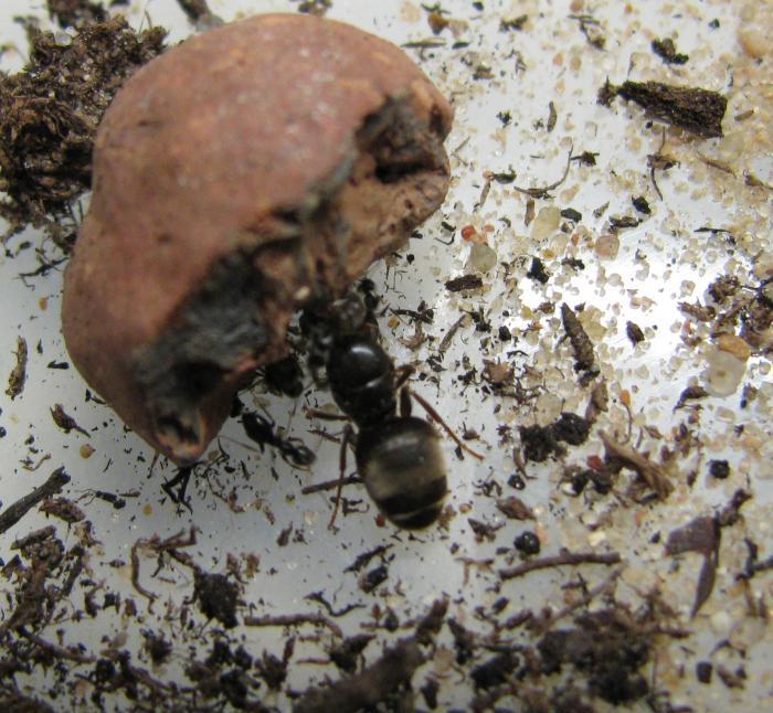 Во время пересадки цветов обнаружили муравейник — очень маленькие (3мм) муравьи и матка. Личинок/яиц не видно.