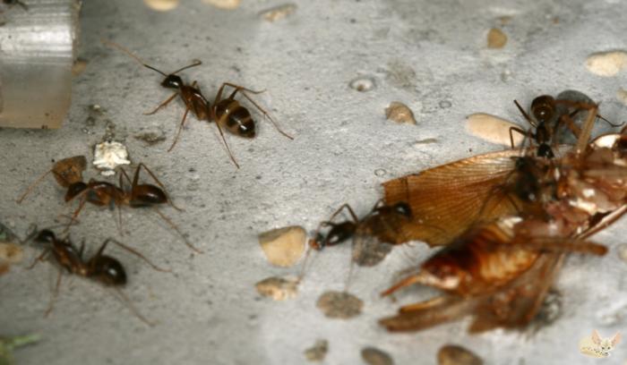 Несчастный таракан периодически огребал от муравьев смачных люлей, но в целом держался бодрячком. Несколько позже приехали господа с "Первого