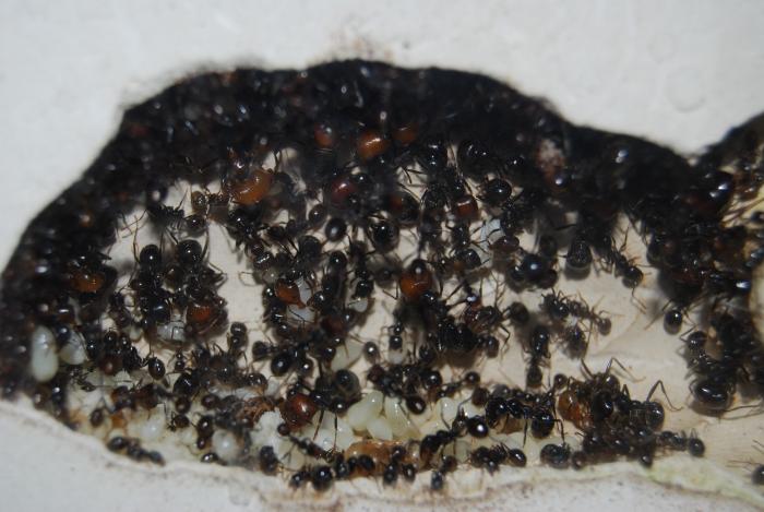 А вот с кремами было похуже сначала всё шло гладко плодились и радовали меня а потом... Переселил в формик по проэкту antfarmera стеклянный дисплей. Как оказалось кремы очень ну очень мелкие. Щелей через которые они убежали особенно матка я так и не нашол. Убежать то убежали да не далеко. Этот формик на подставке пластиковой, эта подставка с рёбрами жёсткости тоесть тунельчики. Вот в эту подставку в самый узенький тунельчик они и поселились, частично забарикодировали вход. Что делать дальше понятия не имел, подкармливал. Признался жене думал прибъёт, не прибила, поняла... люблю её. После глобального побега колония была успешно переселена обратно в пробирку. Колония после побега поредела но в инкубаторе опять пошла в рост уверенно и мощно и я опять задумался о переселении. НО! Неожиданно рабочие начали умирать расплод больше не появился матка осталась одна и больше потомства не давала одна она прожила месяц и ушла к звёздам.... Печально, с рационом не эксперементировал, виню всё таки себя так как объективных причин смерти колонии не вижу. =(