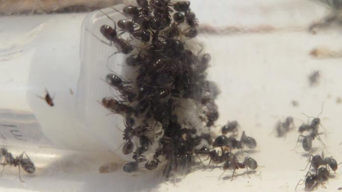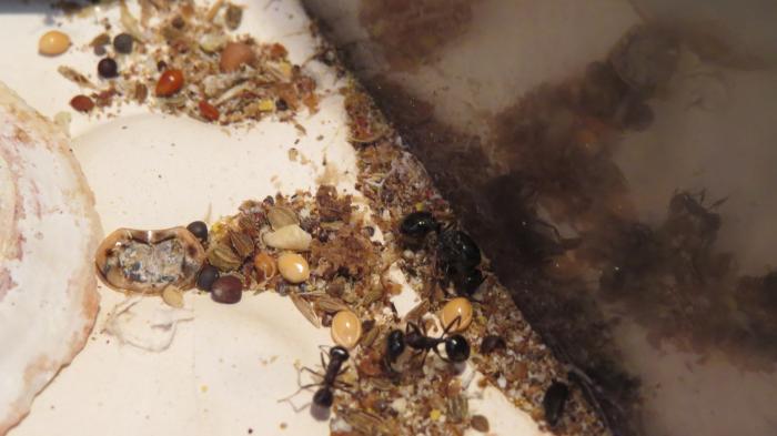 Сами по себе интересные муравьи, но структоры поинтереснее. У этих корм всегда из зерна есть, каждый день даю белок. Но зерно никогда как переселил ( в ноябре из другого формикария ) не таскают в формикарий, не могу понять почему. Зерно едят ( притаскивают в камеру где расплод, зерно уже без шелухи )