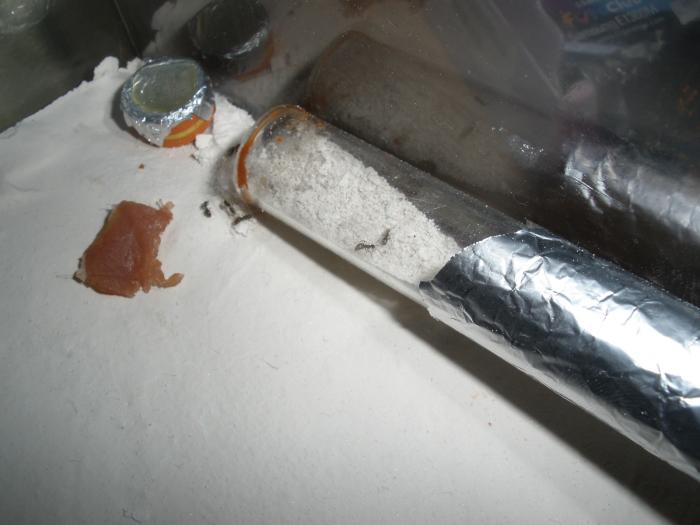 После этого они останутся жить в пробирке. Нужно убрать затемнение с пробирки (фольгу), а формик затемнить. И Торба верно советует, не ложите на гипс никаких овощей/фруктов/мяса, всё впитается. Сделайте кормушку - кусочек фольги, ракушку, плоский камень...