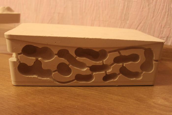 когда гипс застыл, вытащил из формы и начал делать ходы и камеры