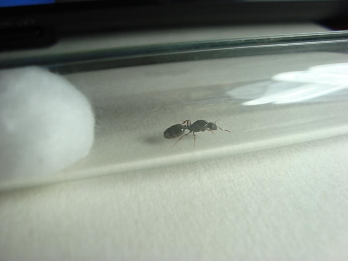 Ну что комрады. После годового опыта содержания Lasius Niger, недавнего приобретения матки Messor Barbarus, захотелось мне чего-то совсем маленького. Я "положил глаз" на тетриков, посмотрел таблицу лета и ждал своего часа. В течении недели не раз снимал с себя маток с крыльями. Сегодня ничего не подозревая шел домой, решил посмотреть под ноги, привлекло скопление сервиформики, очень оживленно они бегали вокруг выходов. Присел посмотреть на них, отвел немного взгляд в сторону, смотрю бежит матка, я быстро достал из сумки приготовленную заранее пробирку и домой. Буду теперь ждать развития событий. Кстати, почему-то поймал матку в самый разгар дня около 15:00, на улице +36... жара одним словом, а тут такое )))