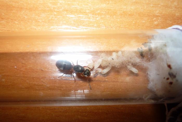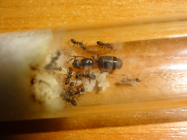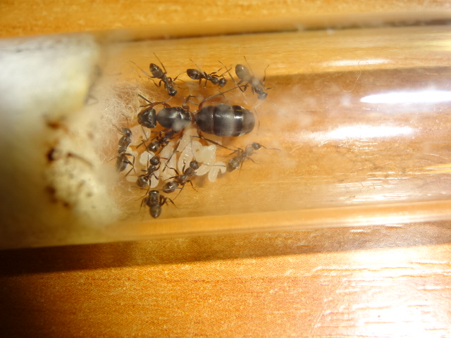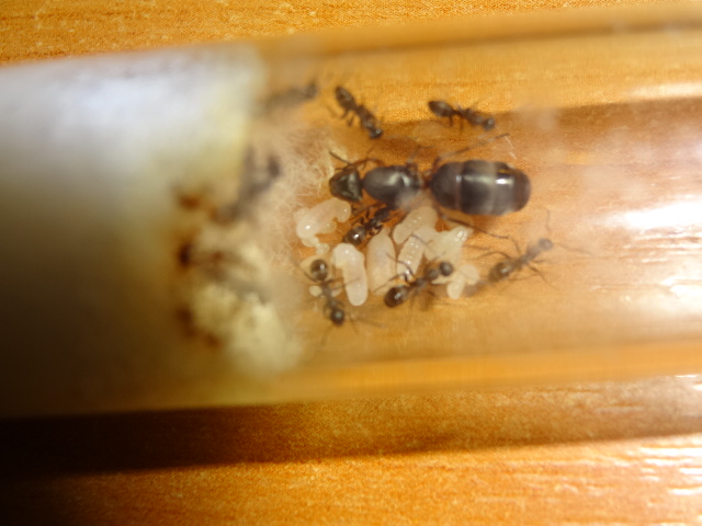 После моего объявления, что матка снеслась, заглянул в пробирку и яиц уже не было и по сегодняшний расплода нету, но муравьи активно едят белок и пьют сироп, думаю есть шансы, что матка еще отложится или на зимовку?