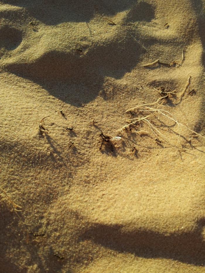 Хм, ветром что ли их принесло на пляж... А кто то может сказать, какие виды муравьёв живут на пляже в песчаных муравейниках, чёрные, и в длинну 6-7 мм? Они в два раза крупнее нигеров как минимум. На фотках есть эти муравьи, лучше фоток сделать я не мог.