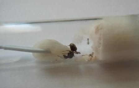 6 сентября в пробирке королева, 12 куколок и 25-30 яиц. Куколок нет. Первые рабочие пока не вылупились, и я жду их появления. Фотки выложу позже.