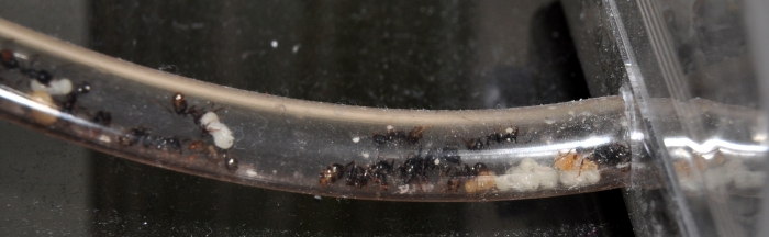 После монтажа обновки на формик, мураши сразу занесли весь расплод домой, и развесили на прогрев.