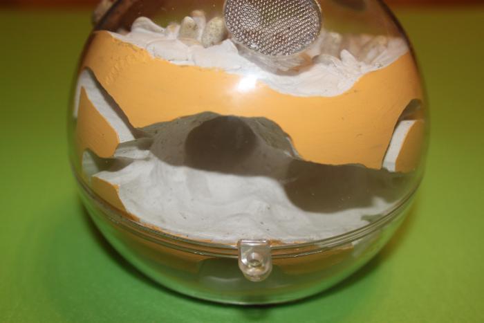 Вот мой формикарий который был доделан в качестве образца, так как треснул пластик в холодильнике (пытался вытащить гипс из шара).