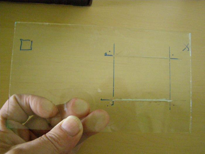 Стеклорез не режет стекло, как таковое. Тоесть это не нож, который прорезает стекло, он только царапает его, и при том не глубоко. После того, как намечена линия стеклорезом, стекло надо сломать (согнуть) рядом с линией, а так как стекло не гнется, оно ломается в самом слабом месте, т.е. в линии разреза.