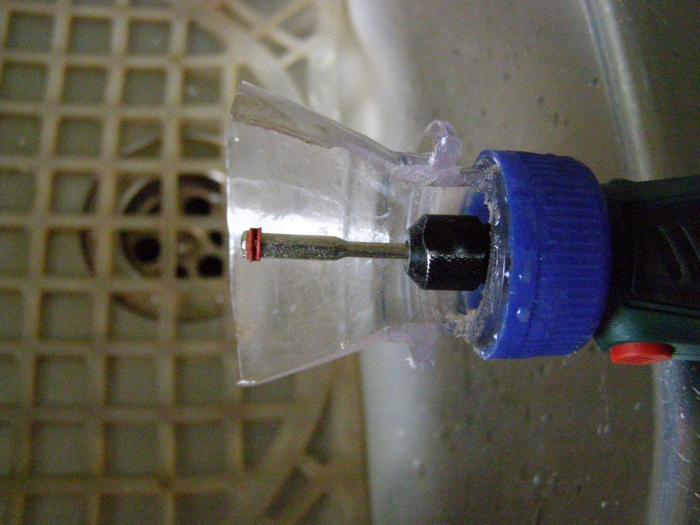 Можно конечно и просверлить, и порезать, но выломать его тяжеловато будет. Скорее всего лопнет. Да и склеить можно (что я в первом варианте и сделал), но некрасиво!!Мне не нравится, не смотрится.