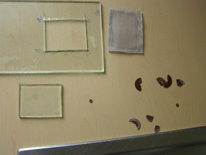 *пришлось придумывать/осваивать собственный метод, т.к. перепробовал ВСЕ из интернета!(и что не работает!).. Сложные операции с трубчатыми сверлами и пр. это очень утомительная работа, и нужны хитрые инструменты... Я как-то давным-давно для телескопа вырезал кружок трубчатым стеклом... трУУУдно! (а в моем случае декорации не имели значения, раздолбал несколько экспериментальных стекол, а тепер на раз-два, хоть овалы хоть параллелепипеды режу ;).). Конечно-же чем сложнее форма, тем труднее не разбить(но впринципи возможно).