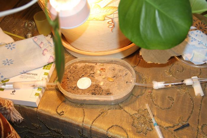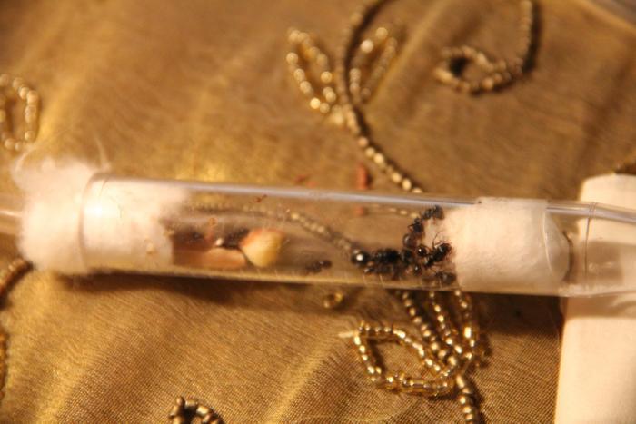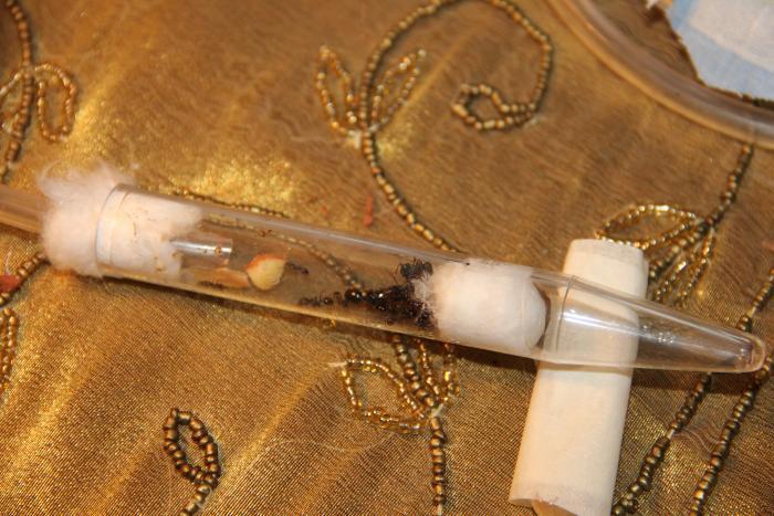 ))) ну как мне подобрать матку на зубочистку, если я ее не вижу. Я подумал может колбу полностью затемнить, а арену нагревать под воздействием лампы, и подрясывать ее, что бы переселились, как получилось с колбой?