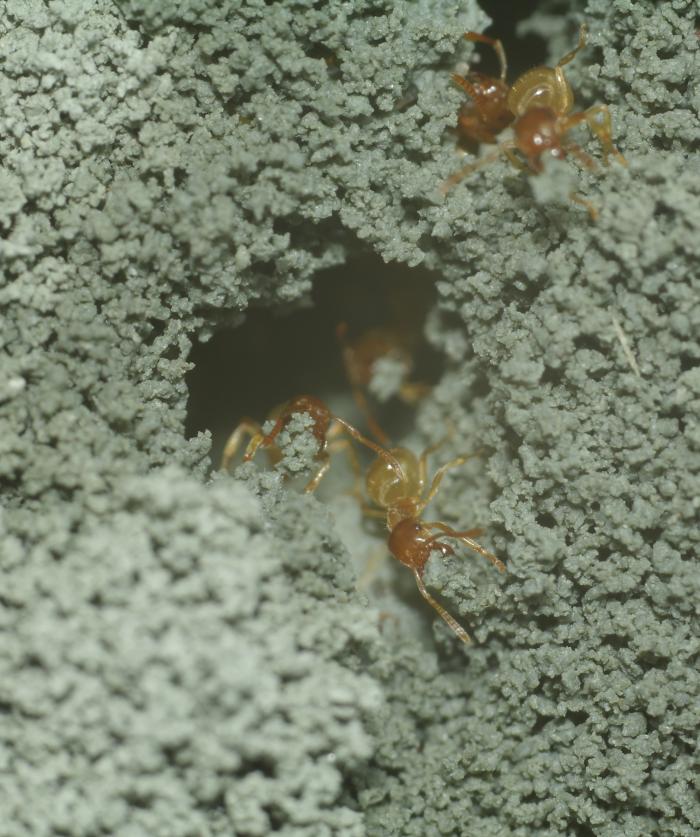Гхм... Ну, не совсем так. Термиты всё-таки делают более "монолитные" конструкции. Достигают они этого скрепляя, скажем, ту-же глину размачивая её слюной и притирают её кусочки друг к другу. Так-же термиты (особенно если строительный материал не глина а что-то сыпучее, скажем песок) используют свои "продукты жизнедеятельности. Ими-же они, к стати, выделывают изнутри все свои камеры и ходы.