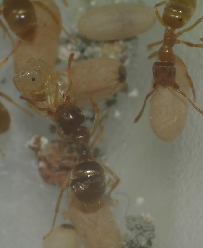 P.P.S. На одной из фото, крупным планом есть муравей, странный такой, видимо "загарелый". Да, на этот "загар" и обратите внимание! Для флавуса (имхо) быть коричневым - не норма! И ещё на 1 фото видны такие-же рабочие около матки! Заметьте, что их у меня не 1 и не 2...