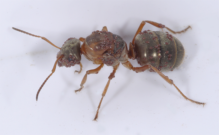 "Это дейтонимфы уроподовых клещей (Mesostigmata: Uropodoidea). Раньше их помещали в одно семейство Uropodidae, fтеперь раздробили на группу семейств. На муравьях чаще всего представители рода Oplitis. Клещи вреда никакого не наносят. Просто форезируют".