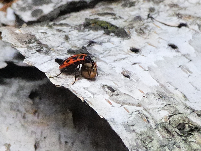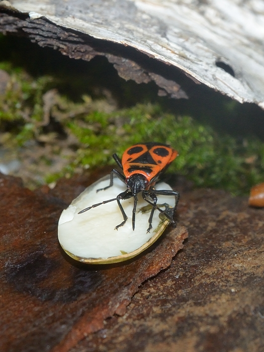 Они нарыли норок в трухлявой коряге. Сейчас одна копает пещерку, выкинула кучу мусора и щепок оттуда, гнездится. А у этих клопов нет такого, что труп родителя служит потом первой едой молодняку?.. А то может я зря трупики изо мха и из-под коры убираю.