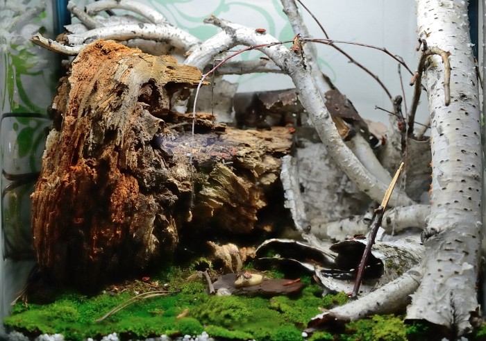 Планируем добавить мокриц, посадить ещё улитку и раздобыть где-нибудь чешуйниц. И ещё неизвестно, кто выползет из коряжек.
