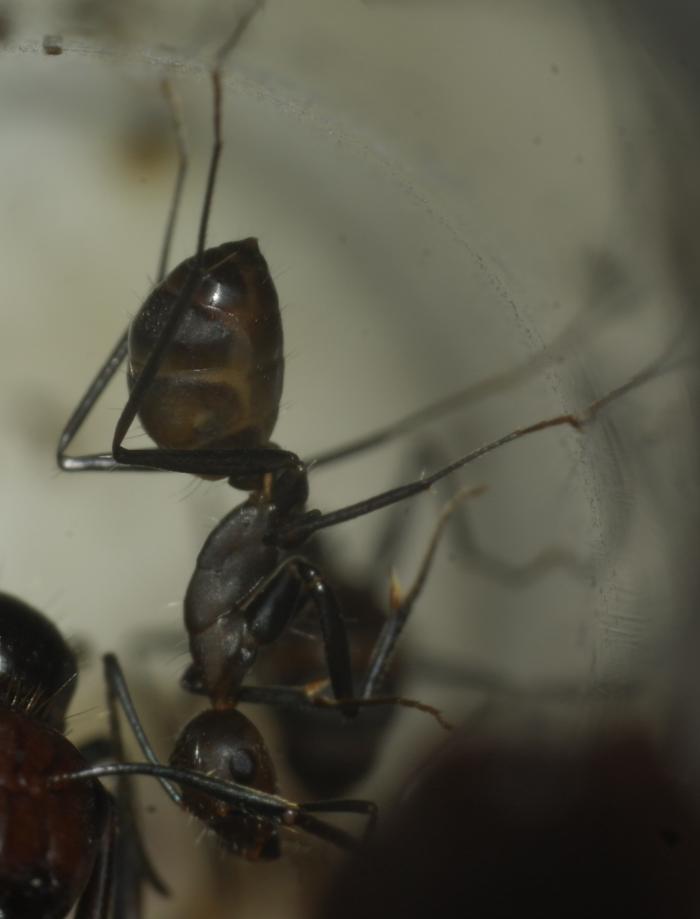 Кто знает, почему так быстро в этой колонии еда тратится? Ещё вчера 2 рабочих были как на последнем фото. А сегодня у них опять брюшка обычного размера...