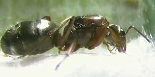 А вот и она. Серфиформика моей мечты. Я действительно представлял ее немного побольше или равную матке Messor Structor. Но она оказалось меньше. Матки достаточно пугливы и свободолюбивы. Я подарил обеим новые дома, но приняли их не сразу. То на ватке посидят, то к выходу бегут. Ну: Затемнил, и на время забыл. Естественно мельком их снять удалось.
