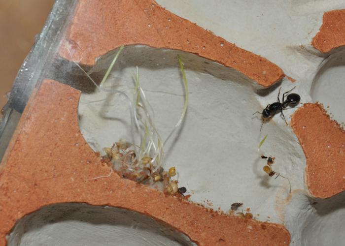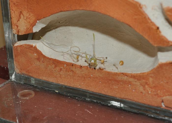 4- Зерна разнесли по всему формику. Я начала греть- начал собираться конденсат на стекле, а зерна проростать. Сейчас конденсат только на крышке арены собирается. Что делать с проросшими зернами?