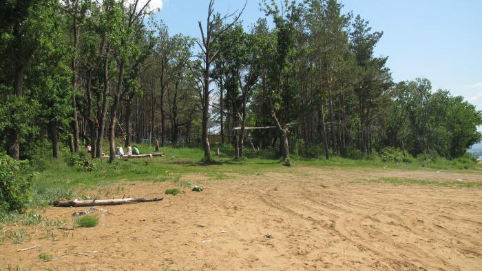 "Отправились в лес"- это значит отошли от забора школы на 5 метров:) Само здание находится на высоком песчаном берегу Жигулёвского моря (это водохранилище на Волге).
