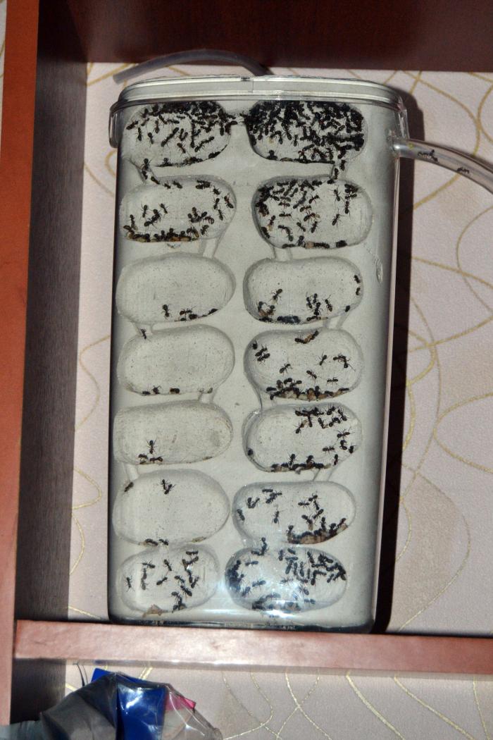 Ааа, да неет) Я не так выразился) Я хочу контейнер как ваш, то есть с камерами и наполнителем сделать, только один сухой, чтоб не мучится с градиентом влажности) и потом по мере роста колонии подключать дополнительные) Думаю будет даже красивее, если аккуратно выполнить, чем цельный формикарий - плита)