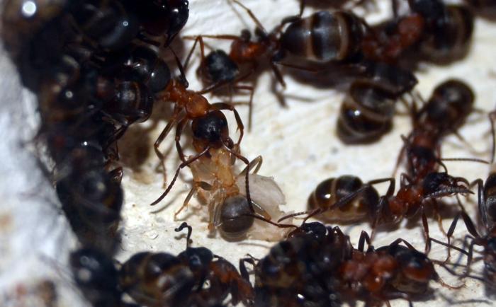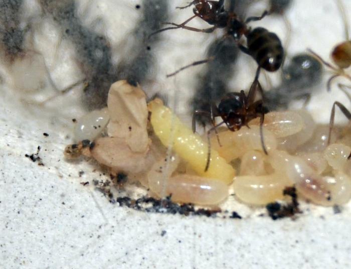 Не знаю что и делать. Похоже придется наблюдать за развитием этих сволочей (Семью не хочу терять !!!тем более раптиформику) Здесь на сайте читал про них статью, так там же вообще страшилка, написано что муравьи в буквальном смысле тупеют от наркотика и это ведет к постепенной гибели семьи. Ладно, надеюсь сильно не наплодятся. Буду писать о новых событиях, но всё же жду ответа того кто возможно с этим сталкивался и поможет мне без разбора формика!Т.к форм разобрать не получится, что бы достать заливку нужно феном греть, а мурашам это не понравится)))