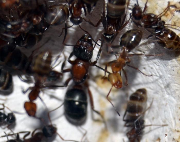Как я вижу в формике жизнь по чуть - чуть успокаевается. Мне кажется что запахи смешиваются и многие чужаки уже имеют запах местной матки.