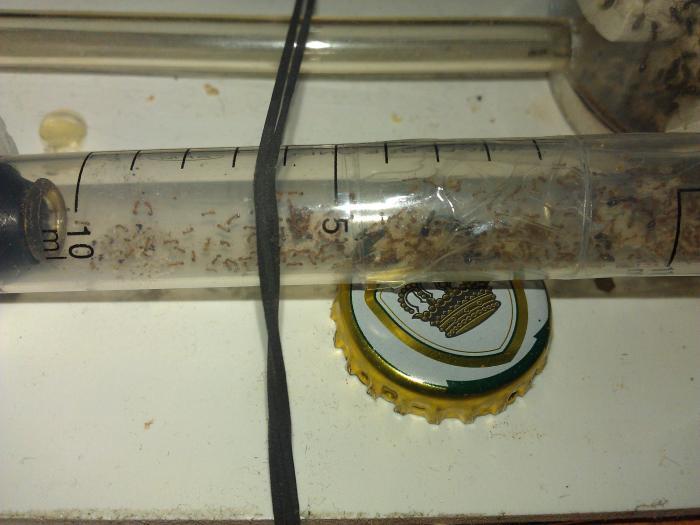 У коллеги дома завелись муравьи. Дал ему классический инкубатор и через 3 недели он мне принес полный шприц муравьев. Среди них 12 маток. Помогите пожалуйста определить вид. Размер рабочих 2-2,5мм. Матки раза в 2 крупнее.