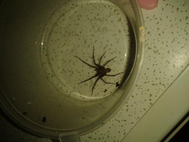Самец Tegenaria, вроде бы. Возможно, T. domestica. Живут в паутинных воронках в углах комнат.