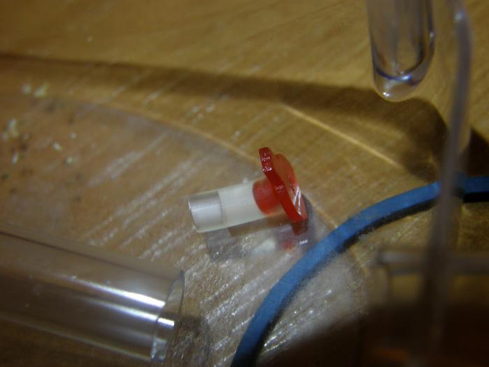 3)заглушка-8 мм. пищевая трубочка запаянная с одной стороны с помощью конфорки, большого и указательного пальца ))) давлением примерно 3-4кг на см.квадратный))))!!!,приобрёл на рынке в ларьке сантехники 5 гр. за метр погонный..она же используется для входа и выхода с арены,приклеена к пробке всё тем же пистолетным клеем.