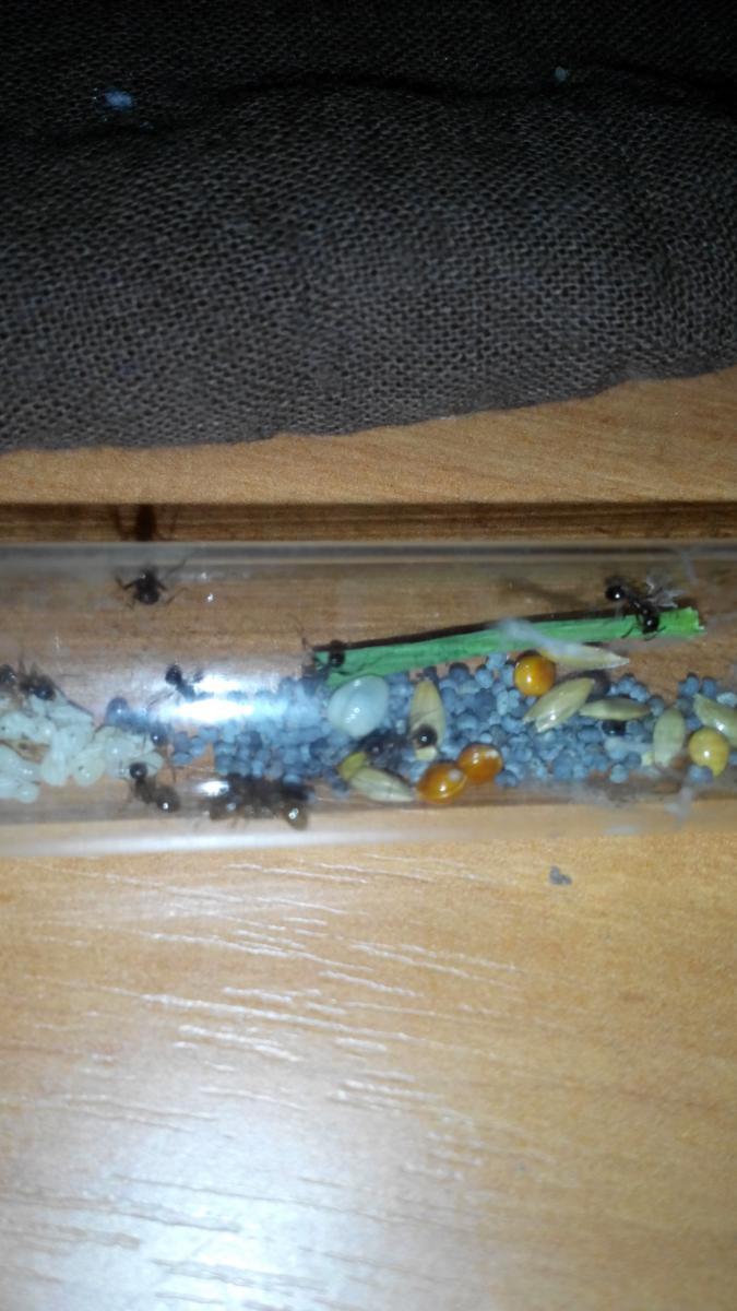 У моих мессоров такая личинка появилась вообще рано. Ещё ни одного рабочего муравья в колонии не было.