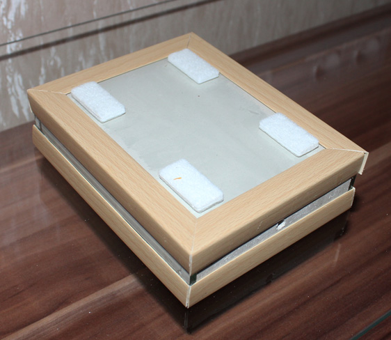 Устроена очень просто: основа стеклянная, оформление уголком, который по совместительству служит еще и держателем для покровного стекла. Покровное стекло свободно, все остальные части на силиконе. Наполнитель - алебастр. Заливался прямо там, вырезался тоже в форме до наклейки уголков. Увлажняю через отверстие в покровном стекле. Это, собственно, все )